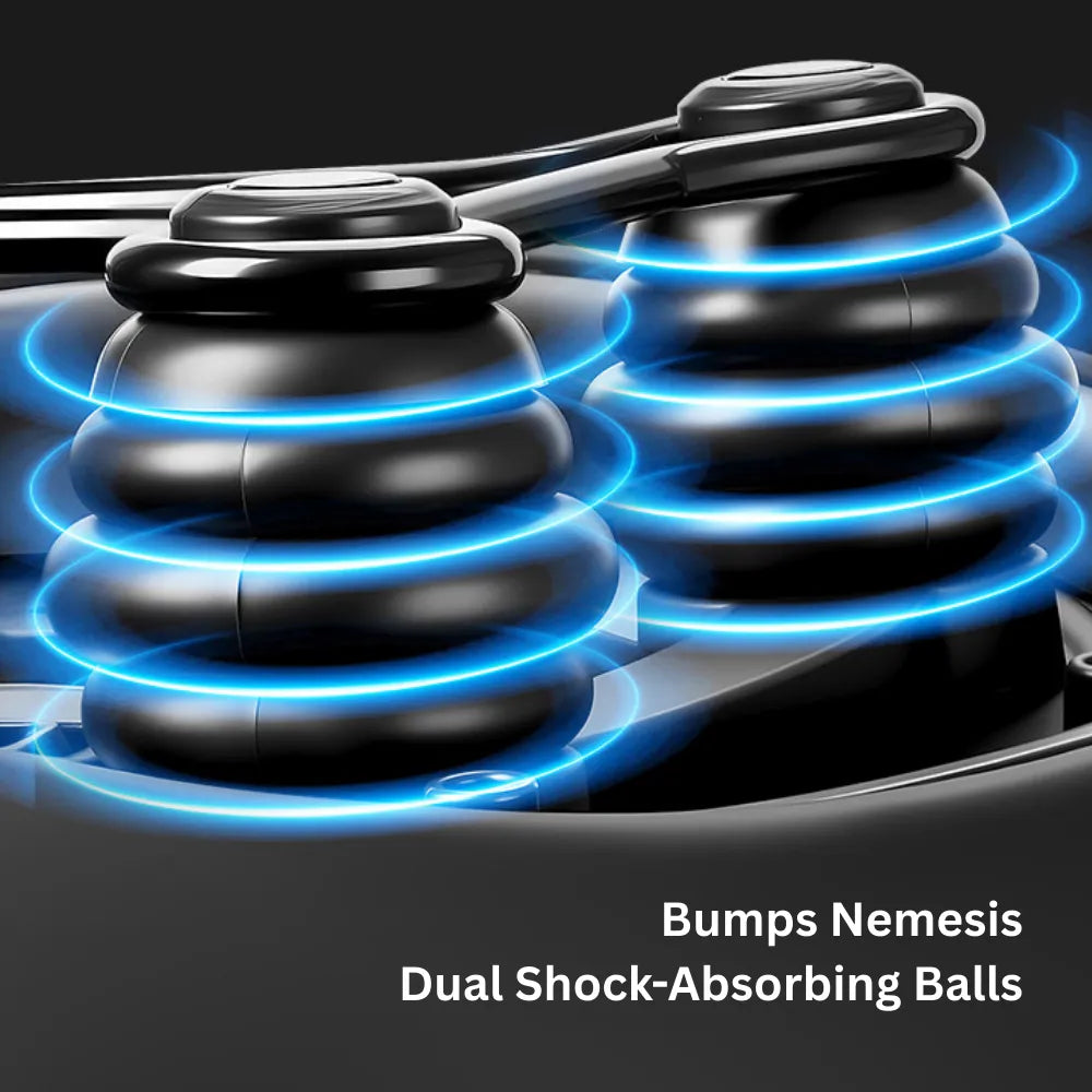 3. Dual Shock-Absorbing Ball System: Equipped with two large high-elastic shock balls and a carbon steel suspension bow. This double-damping system effectively filters out bumps to protect your spine.