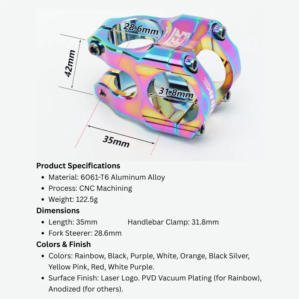 5. Custom Color Options: Make it yours. Available in vibrant anodized colors to match your frame and personalize your setup.