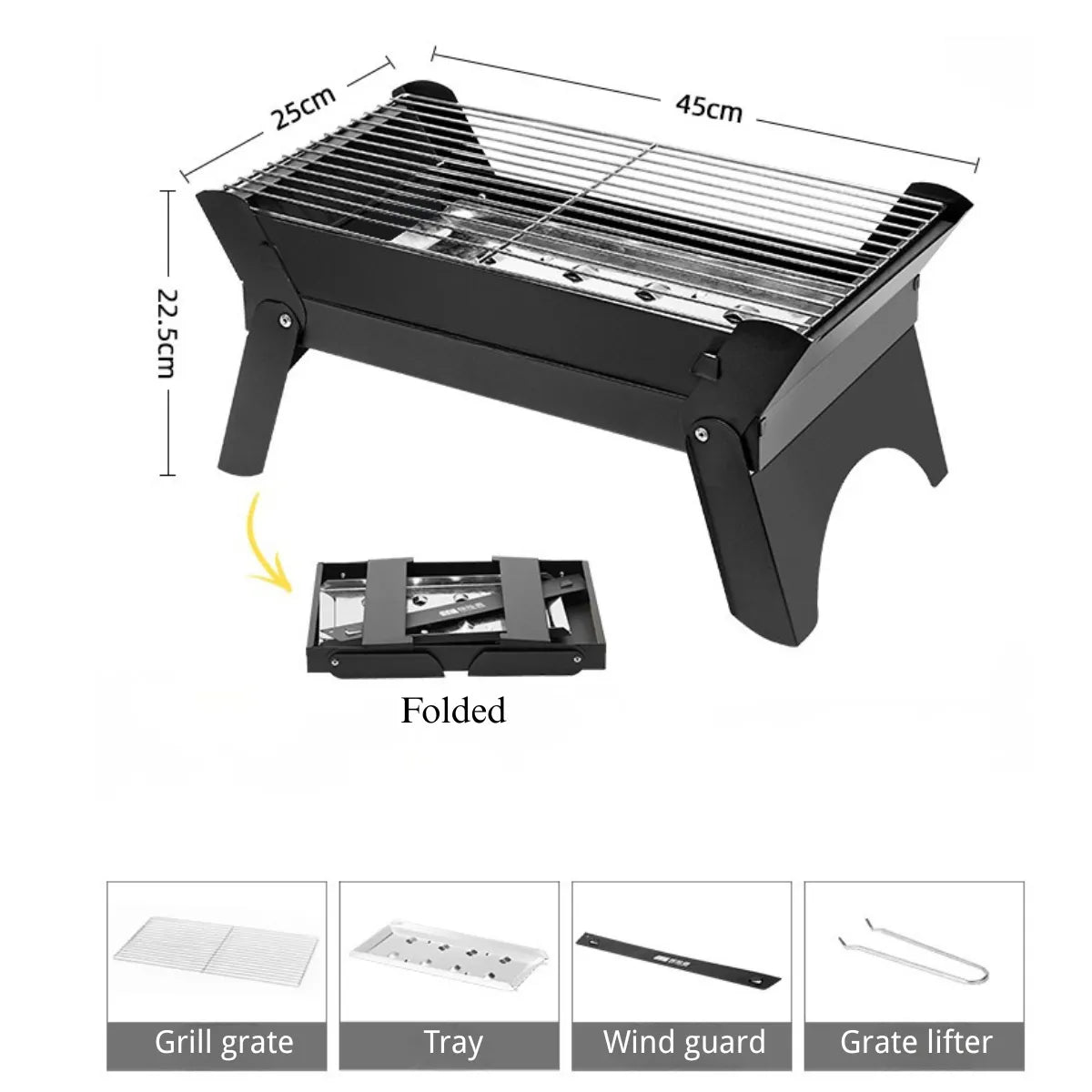 4. Food-Contact Stainless Grate (45X25 cm): Generous cooking area for 2 - 6 people; perfect for portable charcoal BBQ meals at camp, parks, and backyard gatherings.