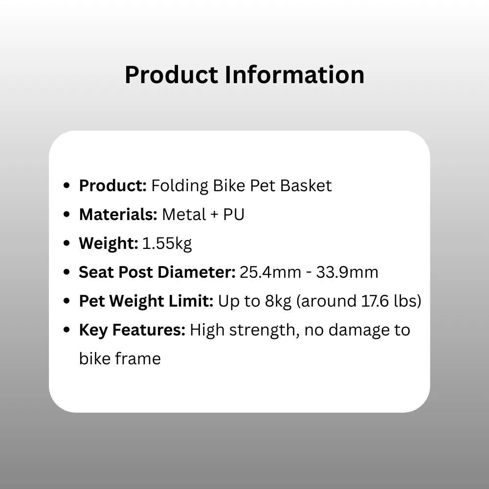 Experience safer rides with this stable center-mounted puppy bike carrier. Unlike wobbly handlebar baskets, it keeps your pet secure and visible on folding or mountain bikes. Perfect for pets up to 8kg.