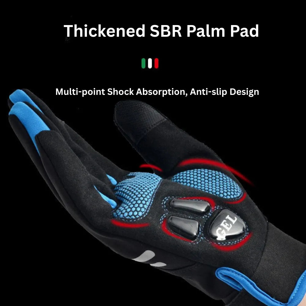Conquer rough terrain and cold weather. These pro-level cycling gloves combine SBR+GEL shock absorption with waterproof fabric, ensuring your hands stay comfortable, dry, and responsive.